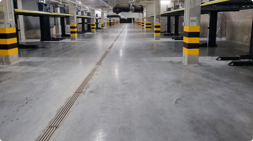 Specjalizujemy się w doczyszczaniu i myciu posadzek w halach garażowych i magazynowych.