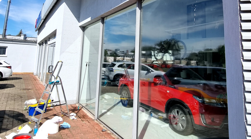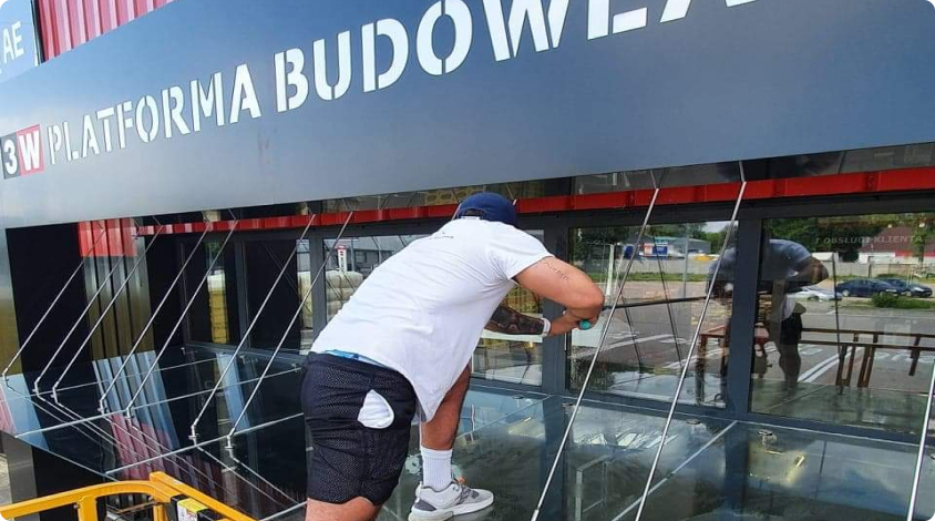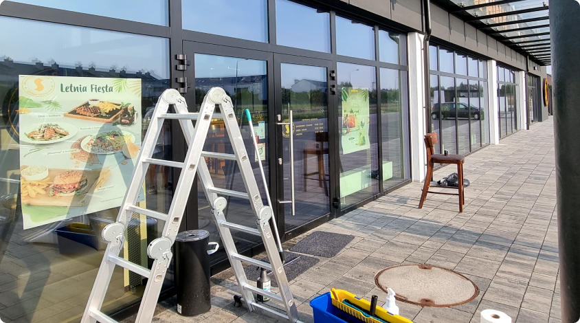Profesjonalne mycie okien, witryn sklepowych i przeszkleń z użyciem specjalistycznego sprzętu.